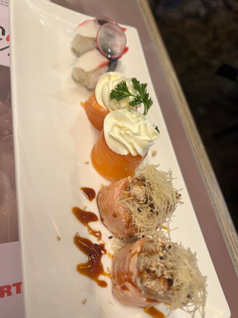 10/10+2So, to start, the service...AMAZING. Really welcoming, helpful, really happy and jolly, you can see that they aren't there just to work and they like to make your experience enjoyable. We (me and my gf) went there for "all you can eat," and I could say that we were surprised by how many different types of sushi there are to choose from also noodles and dumplings and many other things. For the food, you can definitely taste that it's fresh and prepared when ordered. We were ordering just sushi, and it was really delicious and really well presented. Also, the fish to rice ratio was pretty good. I would say that it's more than worth it for the money you are paying, and if you are a sushi lover, I definitely recommend this restaurant.