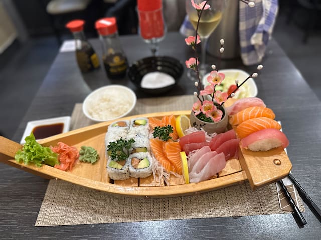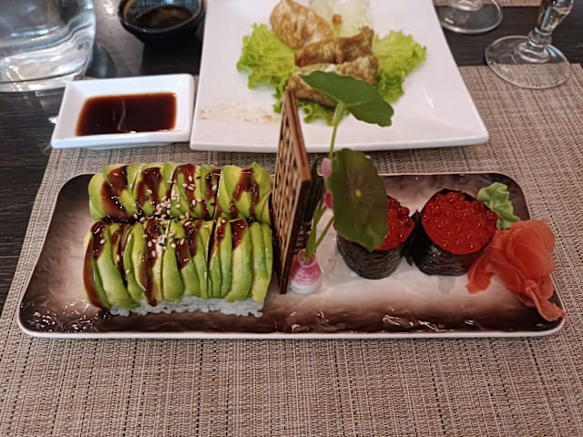 8/10Restaurant catering mostly to take away orders. During my meal on a Monday evening, I was practically the only person eating in, while the ins and outs of delivery services was intense. Despite the underwhelming ambience, the food was satisfactory. Good sushi in a nice presentation. Bonus points for offering a selection of red, rosé and white wines in half bottles.