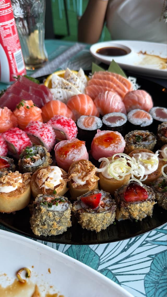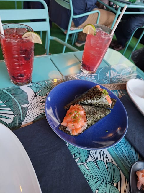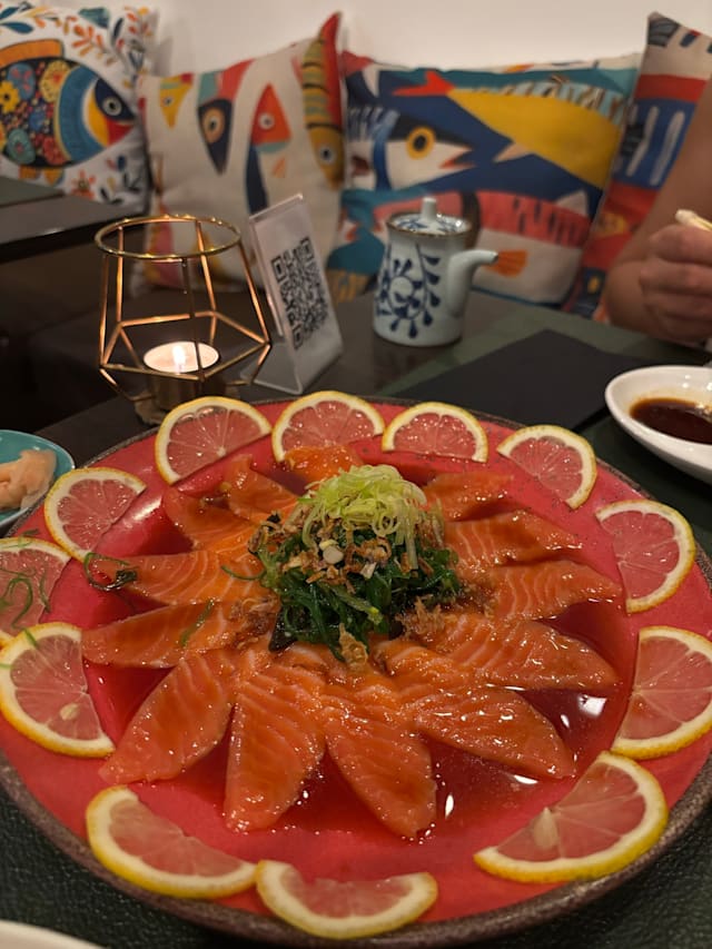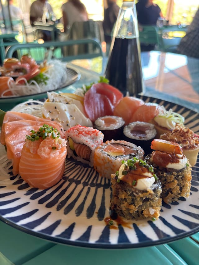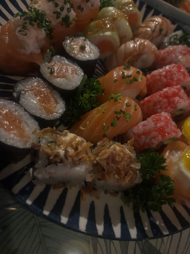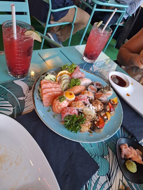 10/10Despite a very windy night, the outside space is very well insulated and no breeze was felt. Also the fire heaters warmed and gave great ambient illumination. The dishes were prepared very quickly. The temakis I was surprised because they were overflowing with salmon and barely any rice (unlike cheaper buffet restaurants) so indeed a very wise choice. The fusion 30 piece set had a decent variety and enough quantity for a meal for two.