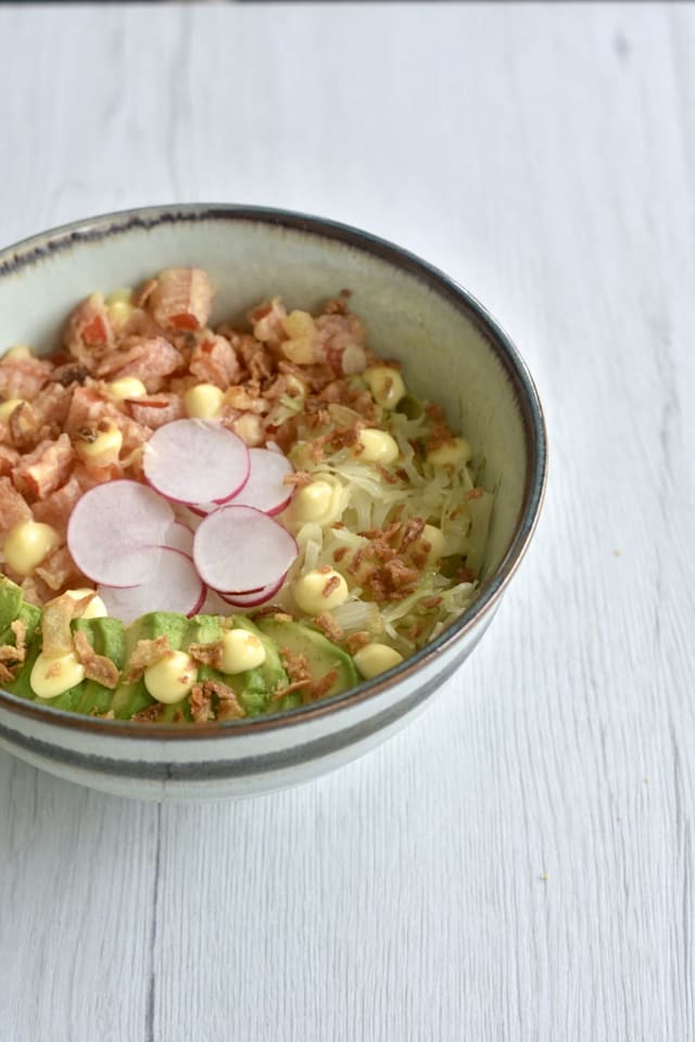 1 sushiroll salmone + chips d'alga + 2 sticks di pollo con maionese homemade