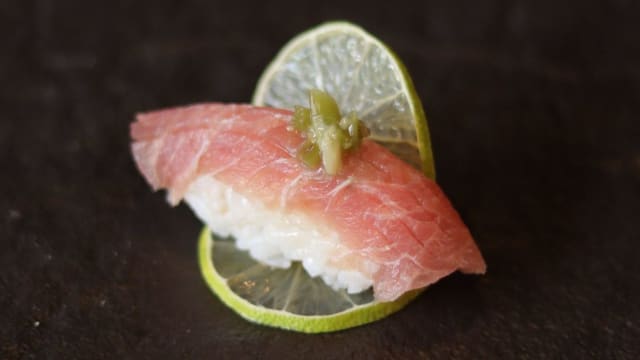 Nigiri de atún rojo braseado con mantequilla de yuzu y trufa