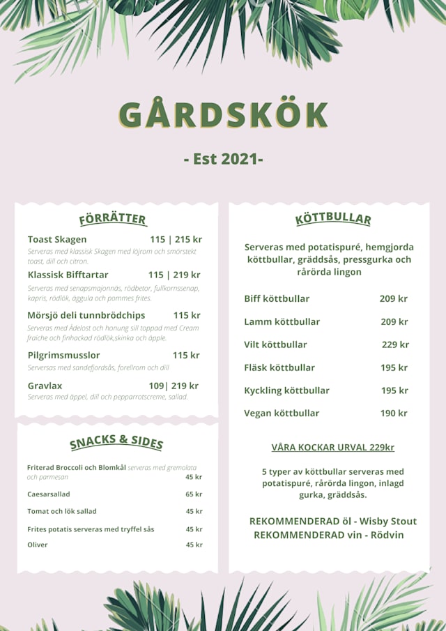 9/10Small little place that helps to have a relaxed dinner. The menu includes several great Swedish plates but also some international variations to fit all the guests’ taste. Slightly longer the waiting time but great quality!