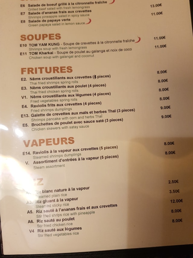 8/10Solid Thai meal (as usual) and an excellent value for the 17th District of Paris. Located near the Hyatt Regency and Le Meridien.