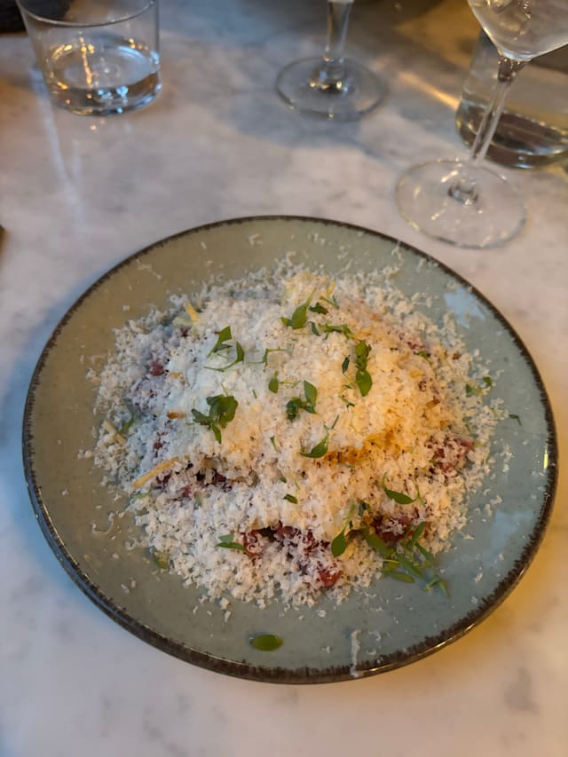 6.5/10waiters shouting to eachother over the head of guests was less nice but food was ok.