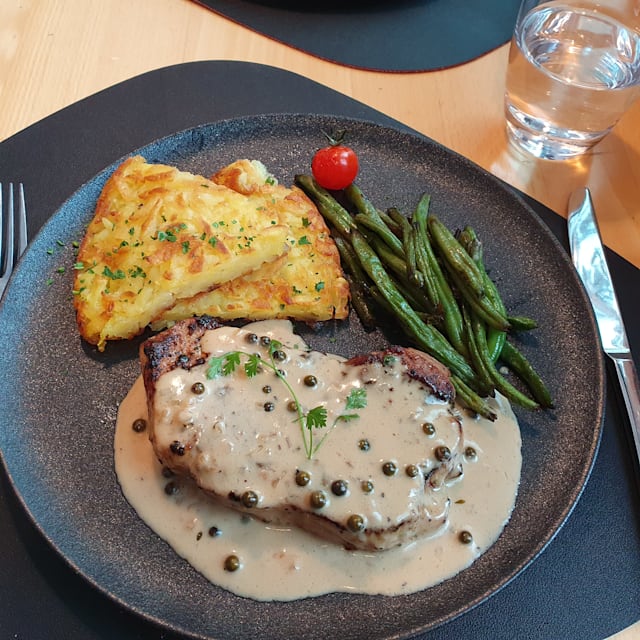 10/10Super nice food. Service was great and we didn’t have to wait long for the food. If you are starving, you will be served really quickly ! Loved the decoration. Like in a chalet and covid distanciation was well respected. Would definitely come back there !