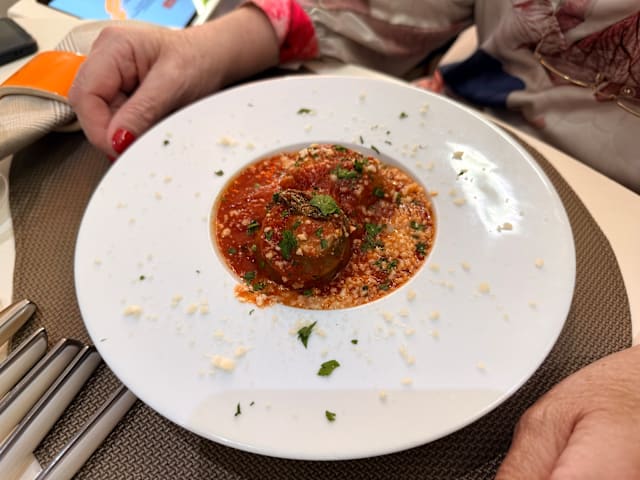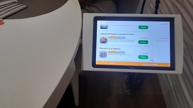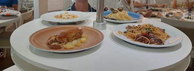 8/10This is a beautiful restaurant with the coolest state of the art technology. The menus are IPads that fit in the table and you order your food on the iPad. When your food comes it drops down from a mechanism above your table. Our waiter was super friendly and we enjoyed talking with him. Now they need to work on the food. We ate a lot around Salerno and the food was fantastic every where but the food here is average and needed more flavor. I hope maybe it was an off night.