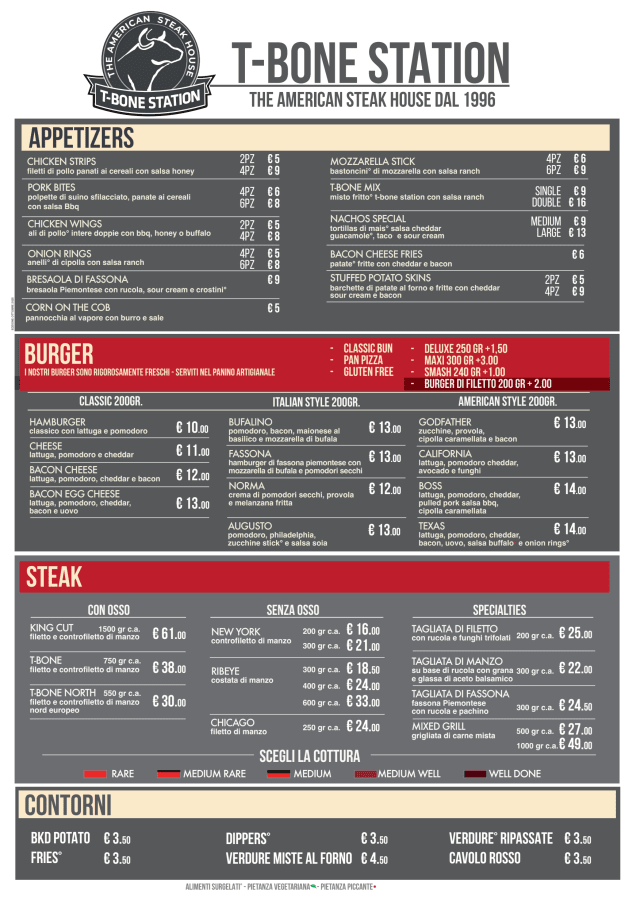 10/10Every visit at T-Bone Station is pleasant. Excellent menu, high-quality meat served in a good atmosphere and super kind staff. Located in between Fontana di Trevi and Piazza di Spagna is a great choice for both tourists and locals.
