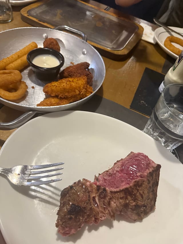 5/10You can not serve steak with cold meet inside. Everyone knows that before frying the meet u have to keep the meet in room temperature for 30-40 min. Otherwise the meet will be fried outside but cold inside. This is what we got today.