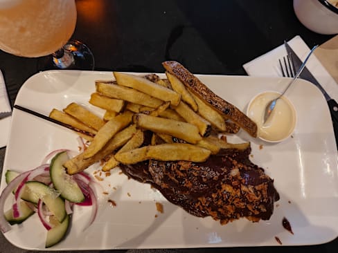 7/10+2The food is good, no question. We had a mix grill, chicken sate, and a chicken burger. The mix grill was slightly dry and the quantity left a bit to be desired, but generally it was good. The chicken sate was interesting, with a sweet peanut butter sauce, The chicken burger was a standout - it's tough to get a chicken burger right, but they managed it. The biggest problem for us was the service. He started off friendly, but his attitude changed pretty much the moment we said we don't need any drinks. I asked if I could get their wifi password, to which he said "Yes, we have wifi but you cannot get the password". He also pointed to an empty bottle I had and told me you cannot drink that. To top it off, the restaurant then told TheFork I was a no-show. The good food didn't outweigh the bad service.
