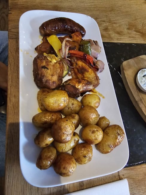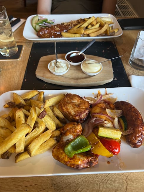 4/10That restaurant was understaffed so it took 1.5hrs to get any food. In the end we were given one of the wrong dishes, mistakes happens we got on with it. The food was not very good at all, chicken was very dry and fries were way overdone. The “salad” was literally 3 tiny pieces of a bell pepper and a slice of eggplant very small Portions. Even with the discount this wasn’t worth it and even though the owner was apologetic for the service it didn’t make up for the lack of quality in the food and has made us decide not to return again.