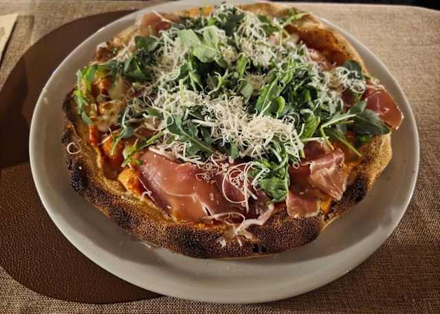 - Pomodoro, mozzarella, erudo, rucola, ‘grana!