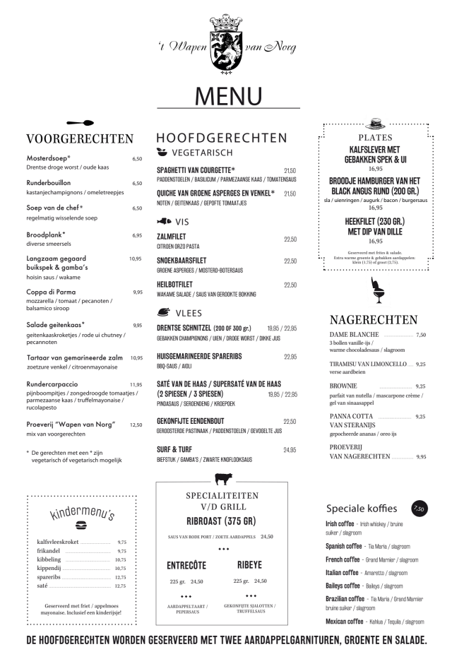 't Wapen van Norg is rated 0/10.TheFork users have rated accordingly in the following categories: