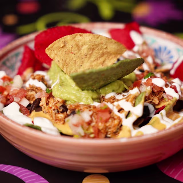 - Bowl servido con los mismos ingredientes que un burrito, pero sin tortilla de trigo.