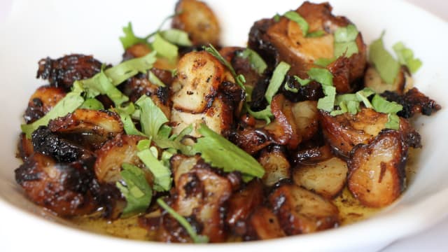 Octopus, pickles, garlic, white wine and coriander
