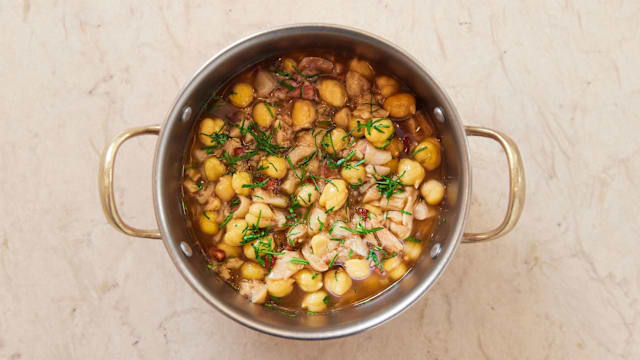 Mãozinhas de vitela com grão e enchidos