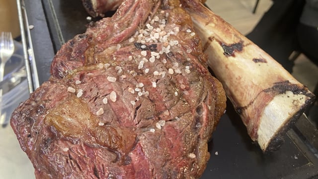 - Costine di manzo cotte lentamente sulla brace, con la caratteristica crosta croccante e caramellata.