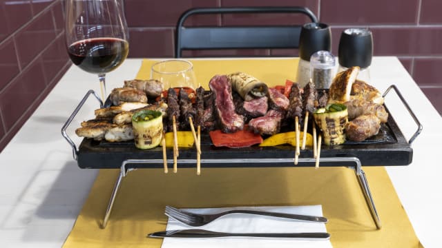 - Grigliata mista con reale di manzo, rustichelle di pollo, coppa di maiale, salsicce e agnello (min. per 2 per.).