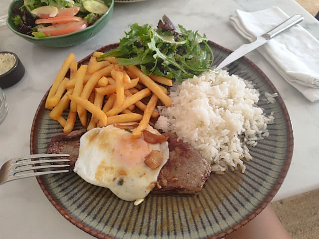 10/10Great food. Great ambiance (located in an old fort. Great service. Surprised only gets an 8.9 review. The bistec (steak) was smaller than usual but the quality of the meat was tear. The bacalhau de Brás was excellent. My kids loved the hamburger, the veggie soup and the desserts.