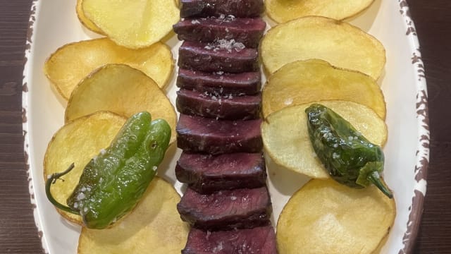 - Todas nuestras carnes llevan guarnición de patatas fritas naturales y pimientos del padrón.