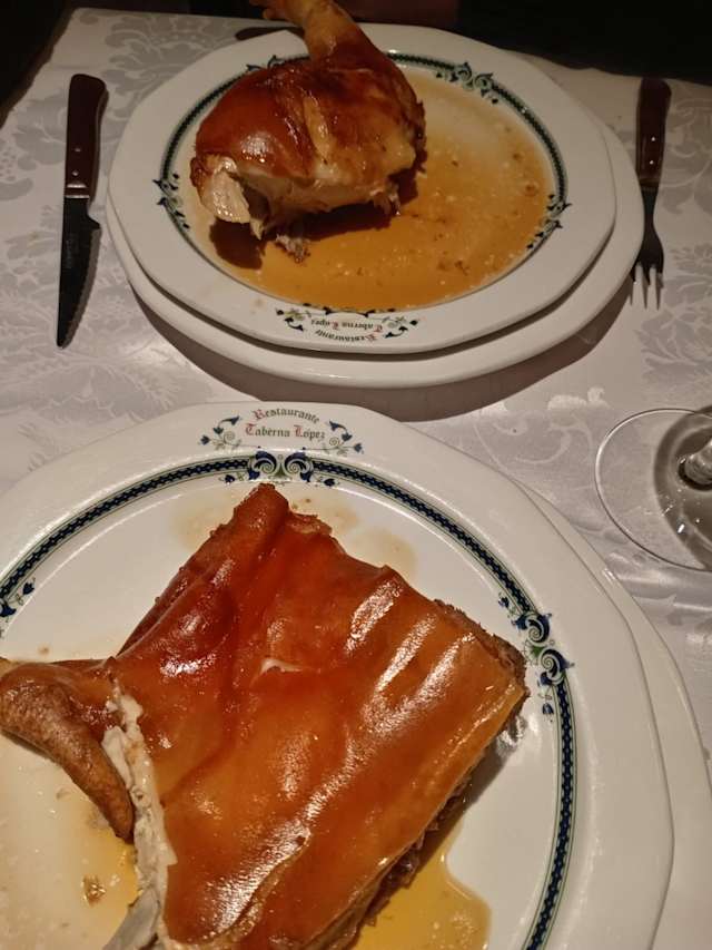 7/10We had the fish soup (Sopa de Rape y Langostinos) as a starter, a disappointment, satisfying in taste, but thin like a bouillon, monkfish and langostinos cooked too long, therefore tough. The suckling pig was tasty, with a crispy skin.