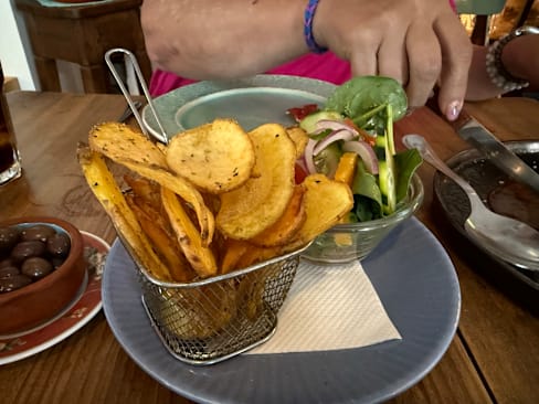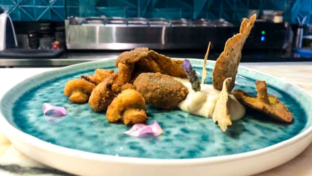9.5/10Excellent food. Really interesting tapas. Loved the gyosas, patatas braves and octopus. Lovely service, beautiful sitting out watching the sun set. Table was unsteady but otherwise a lovely evening