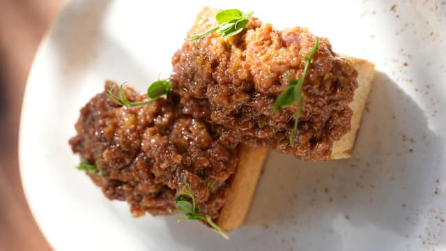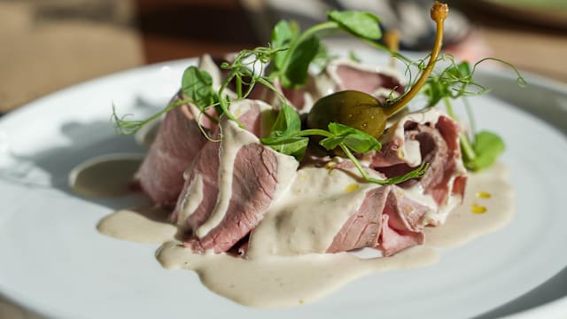 Redondo de ternera a baja temperatura con mayonesa de atún, alcaparras y anchoas