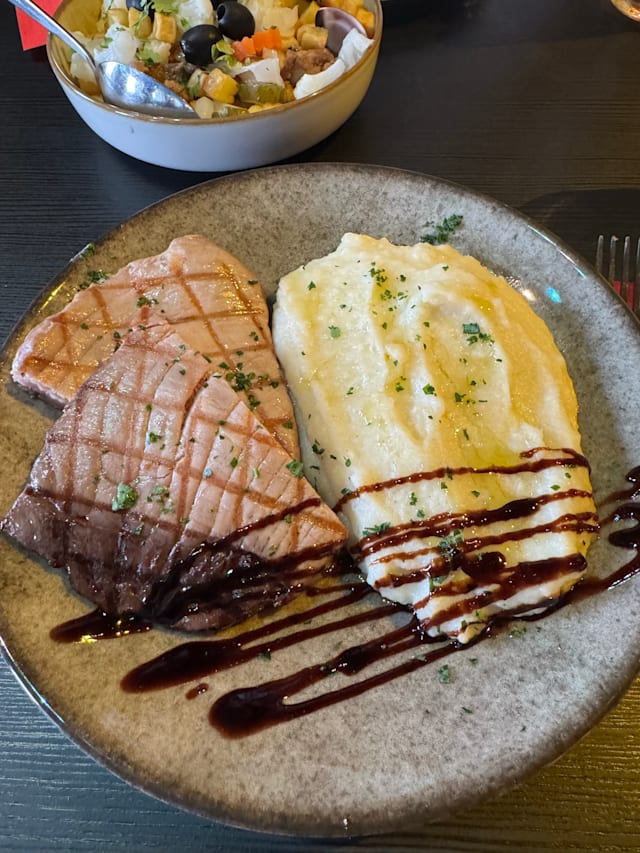 9/10The food was good and the environment was very relaxing and not too loud. The only thing that I wish that was added to the service, was the option to ask how cooked do you want your steak. For example, rare, medium rare or well done.