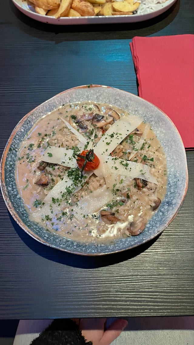 9.5/10we had lovely meal here. we were early, so it was very quiet, but other diners arrived and atmosphere was nice. Tasty, fresh well-cooked food, good portion size. They reassuringly satisfied nut allergy requirements. limited vegetarian options but mushroom risotto was delicious. lovely waitress who spoke excellent English had great knowledge of menu and happy to answer any questions.