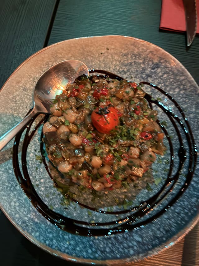 10/10Excellent service and delicious food. The chickpeas with aubergine and pepper is a tasty first course while the tuna steak and the carne de porco à alentejana are yummy main courses cooked and seasoned the right way. This is the real good Portuguese food. I have to go back and try the other dishes that will surely be great too.