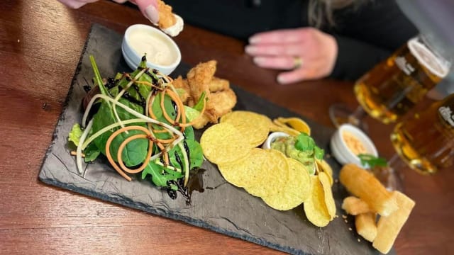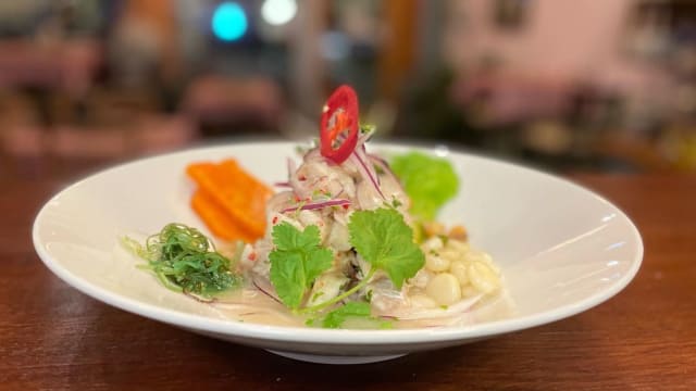 2st mini ceviche, 2st mini pastel de choclo, 2st mini churrasco och 2 st mini empanadas, serveras med mix sallad och pebre ( tomat, lime, chili, koriander lök)