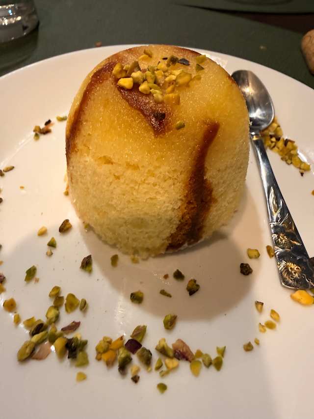 - Soft sponge cake filled with hazelnuts, almonds and pistachios