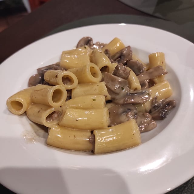 - Calamarata, asparagus cream, fresh sausage and sautéed asparagus tips