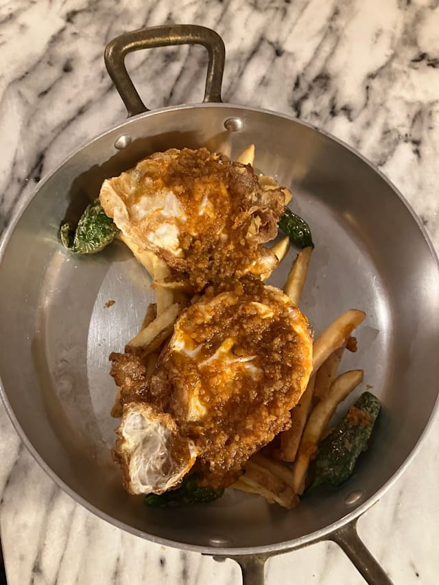 10/10It was a lovely ambience, sitting on the terrace looking over the pool. The food was delicious, we shared the prawns with garlic and chilli and they were perfectly cooked with a smoky, garlic flavour, we also had the croquettes which's were also delicious. We then both had the pork and potatoes which were like matchstick fries and was perfectly cooked and the flavours were wonderful. We would highly recommend this restaurant. It was one of the best meals we had in Tenerife and was not too expensive.