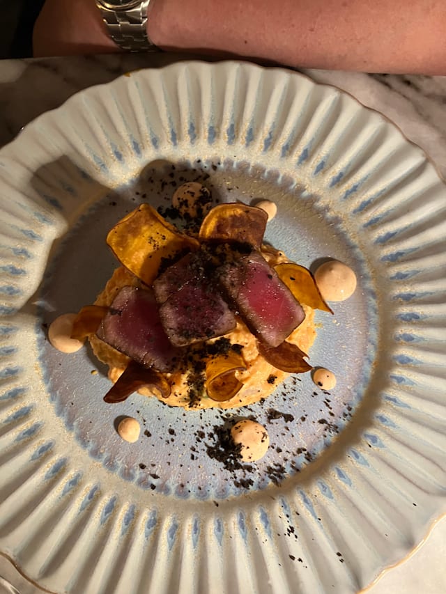 8.5/10+2We had a lovely meal but there is no getting around the fact that it is expensive for the type of food that you are eating. It is a hotel restaurant which is convenient if staying at Abama, but I am not sure it is worth the extra cost if not staying in the complex. Lovely friendly staff and well presented food. The black pork was delicious in particular.