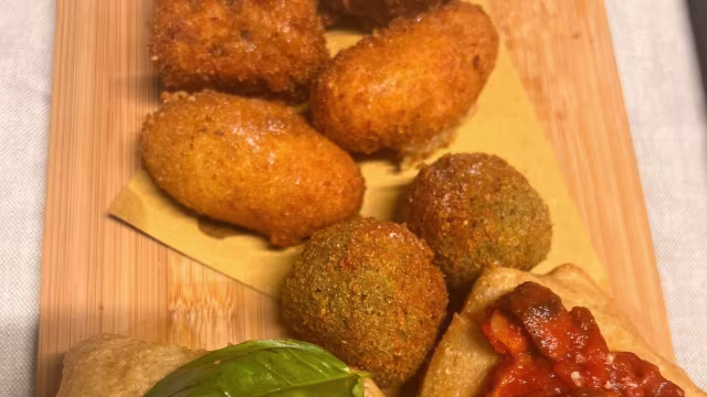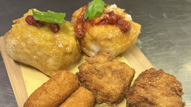 - montanare: pomodoro, grana e basilico – amatriciana e pecorino, arancini al ragù alla bolognese, crocchè con provola e pepe, frittatina alla besciamella, carne macinata di vitello e piselli