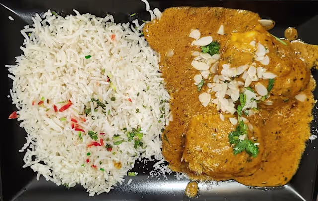 - Blanc de poulet mariné dans une sauce crème ail, noix de cajou, coriandre, piment vert et grillé au tandoor