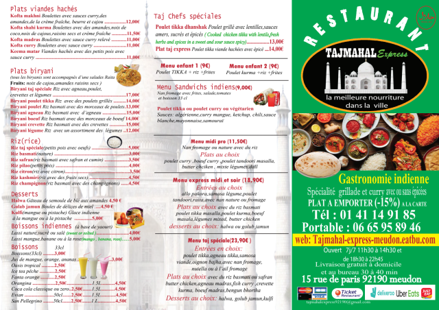 Tajmahal Express is rated 9.3/10.TheFork users have rated accordingly in the following categories: