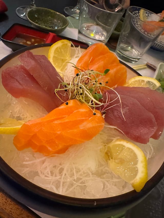 7/10We had a sashimi platter, which was okay. The tuna was very DARK and not very appealing. Shrimp Gyoza was very good as were the yellowtail and salmon handrolls were really very good!