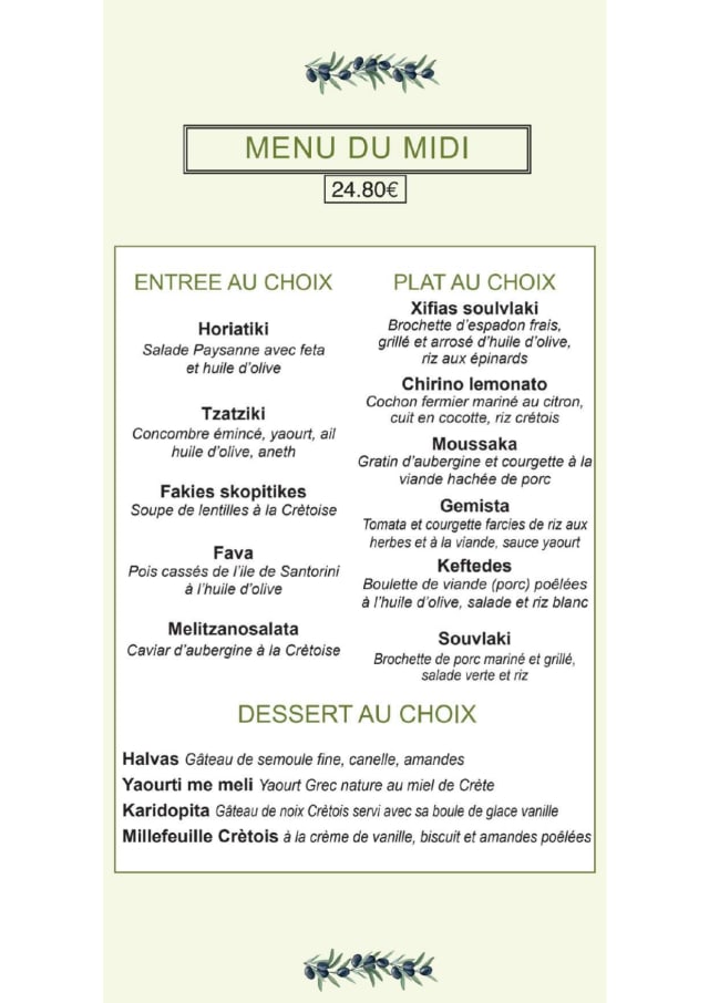 10/10This cozy restaurant reminds us when we were in Crete Island. All the dishes that we ordered were very fresh and tasty. The service was also nice. It is good to come when you want to have an experience of Greece in Paris.