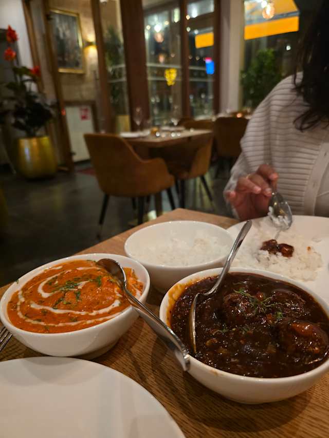 - Sappige lamskoteletten gemarineerd in een aromatische kruiden-yoghurtsaus, gegrild tot perfectie. Geserveerd met aloo mutter & basmati rijst.
