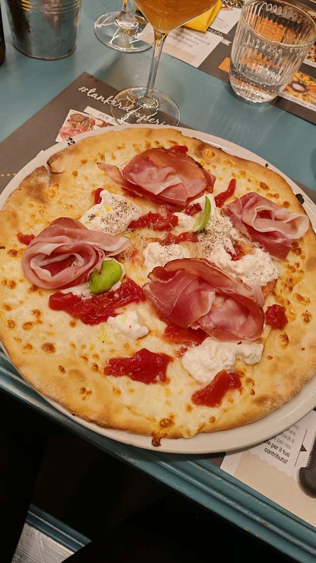 - Pomodoro, fiordilatte, prosciutto crudo selezionato, rucola, pomodoro semi-dry
