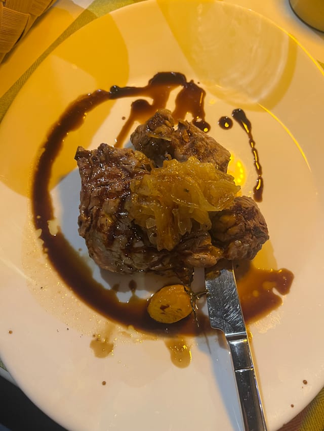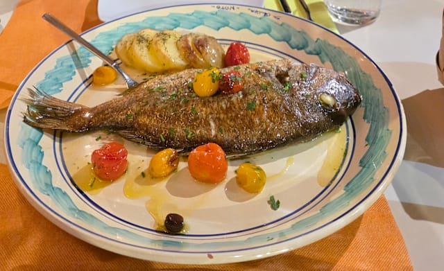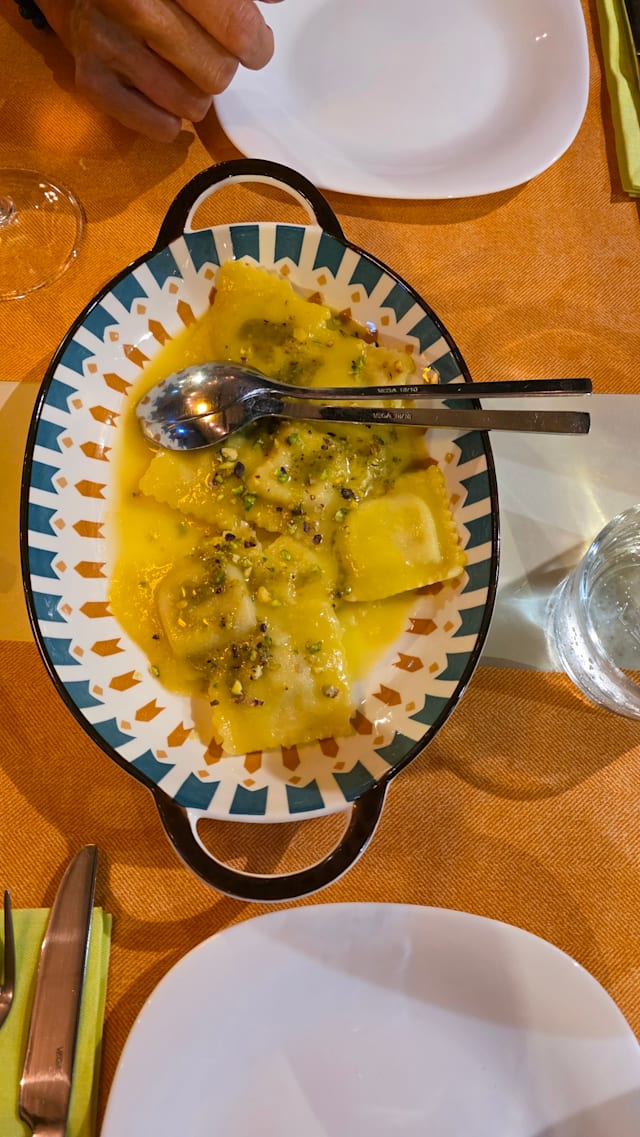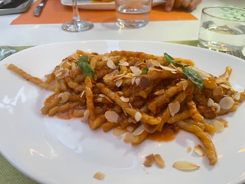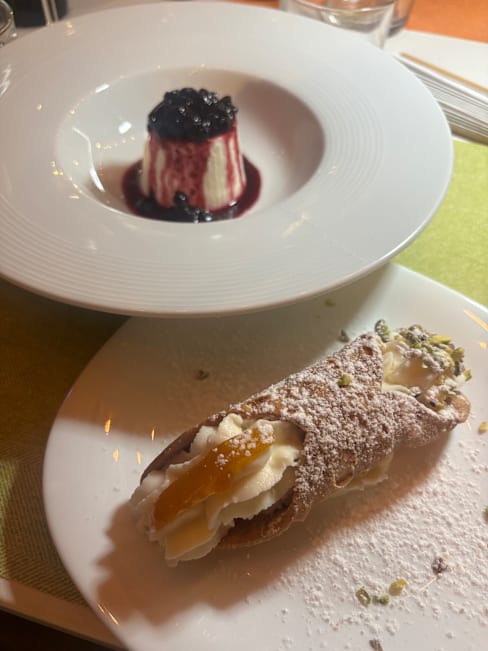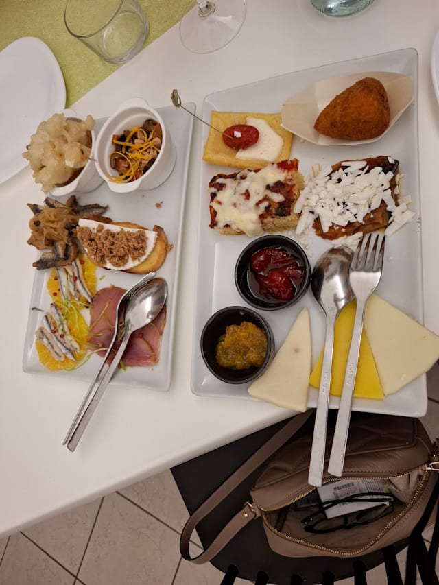 8/10One of our best meals in Sicily (the other was also in Noto). Highlights here were the cheese platter, the aubergine parmigiana and the sea bream ragu with pasta (sublime). Other members of our party were less enthusiastic about their choices, hence a star dropped (I would have given it 5). Service was friendly and efficient but the mains took a long time to come (hence another star dropped). We ate inside because outside was full - the room soon filled and became a babble of happy chatter. Seats not the most comfy and a bit hard to hear in all the chatter, hence the star dropped for ambience too. Overall though, an enjoyable and high quality dining experience. Food was beautifully presented, and I would go again. Thank you!