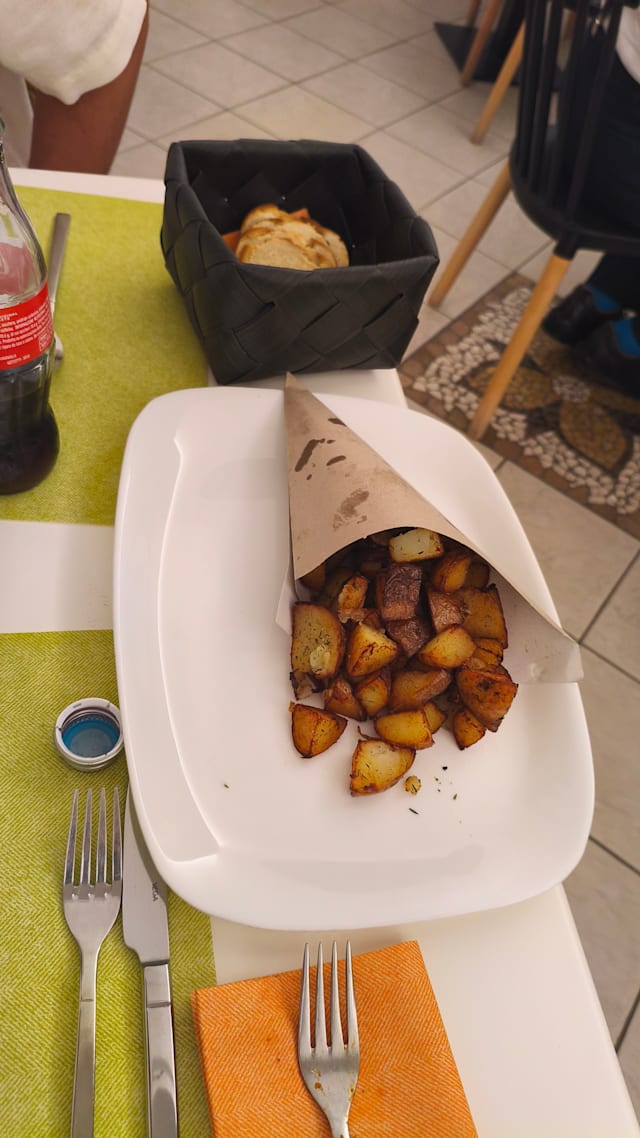 4.5/10The staff really good, offered to sit us inside and showed us but we decided to sit outside for more atmosphere. Attentive, polite and a really clean restaurant. As a family of four it’s not always easy to get something every one likes, but in this case even the spaghetti and tomato sauce was below average, too much octopus on my starter and they brought the fries with the starters and not the steaks. Although they were fresh and hot fries that went down well. My fish dish too much oil but was tasty and fresh and I enjoyed it. We all found something to taste to satisfy us, it’s hard to enjoy your meal if the whole table not happy. A side note the music from the other restaurant was too loud, thankfully it stopped after two songs. This restaurant just may not have suited our taste, the beer and wine also not our preference. It was clean and for sitting on the street watching the people go by and the lovely setting of the views of the architecture it is worth a try.