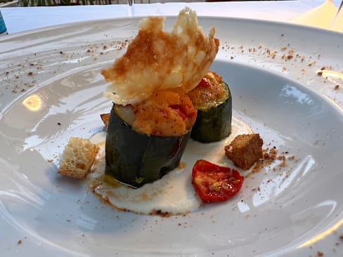 9/10Delightful restaurant with lovely outside terrace, with trees and fountain. We enjoyed the food and were particularly impressed by the local wine. Service was friendly and efficient.