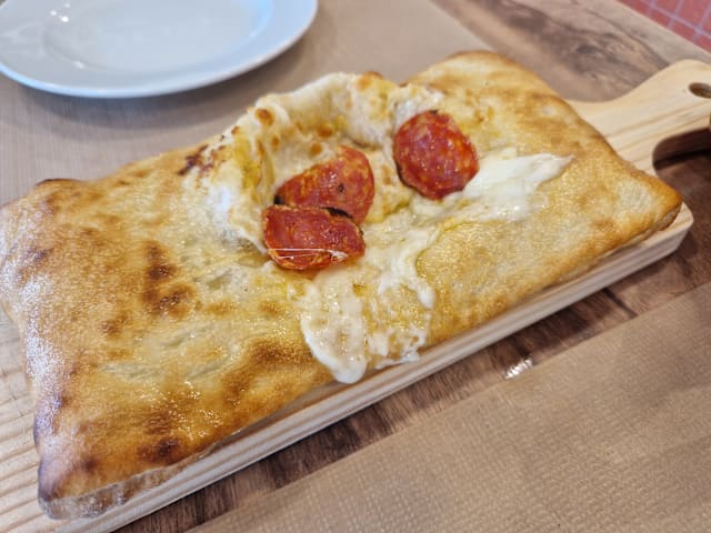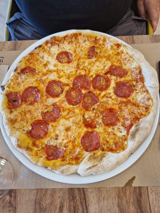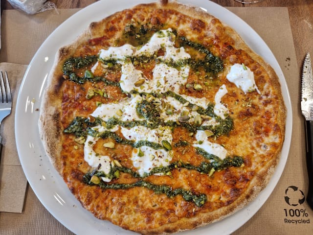 7.5/10Lively thin crust pizza with a fluffy edge. Cheese and pesto garlic bread starter was yummy. Cesar salad with as on the small side for a main dish and would have benefited from a bit more seasoning. A nice meal.