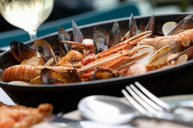 4.5/10The staff was excellent. But we didnt find what we expected in the food. The glasses were dirty , paella had very few sea food in it :(