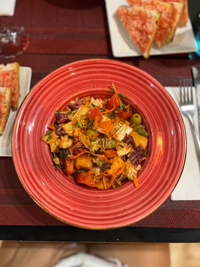 4/10The food was very standard. We each ordered crema catalana for dessert, this was burnt and lumpy in texture, we didn't eat the whole dessert. We have never eaten a worse crema catalana. The dishes were only removed when we left. We were thirsty but we couldn't make any contact with the waiter so we left thirsty.