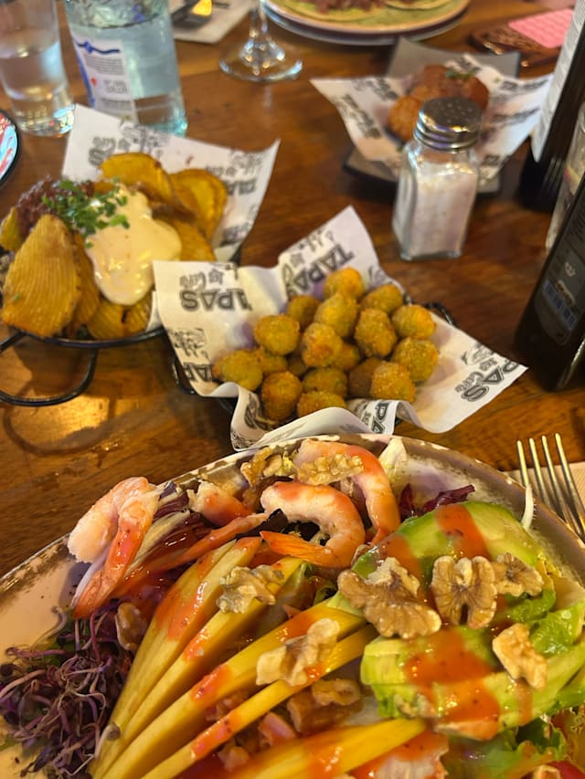 4/10We ordered what was on the menu as starters and then items from the tapas menu. Everything arrived together very quickly, so microwave? So, although mussells described as starters, tapas arrived first.... Food was so, so... But to cap it all the TV was put on not long after we arrived as a Euro match was on, yawn yawn 😴..., we asked for the volume to be turned down but it wasn't. Definitely wouldn't be returning even though there was a 50% discount on the food, only after we queried the bill as it wasn't applied automatically!! We wouldn't return.