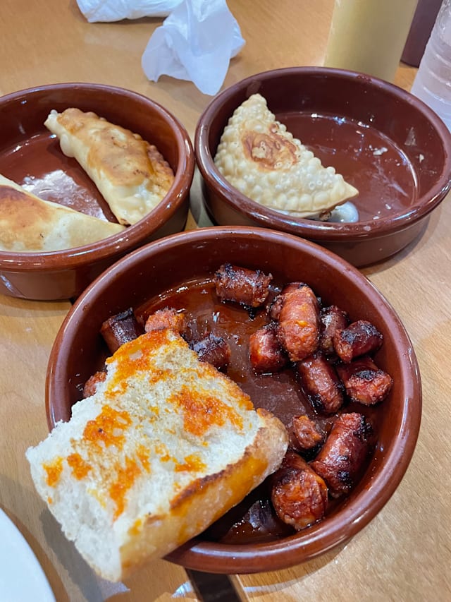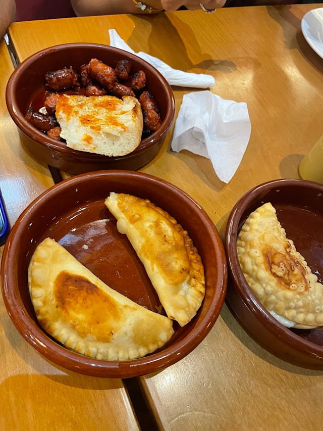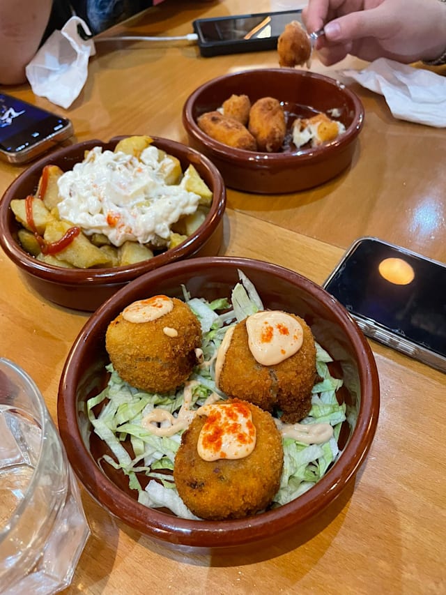 7.5/10We went to this tapas bar with a large group on a Sunday. Although the food was very good and varied, the service was very poor. We arrived first and early. There was only one waitress. The waitress served the food and drinks at different times and late. And, at the same time she was also serving the other tables. It was a bit chaotic. She brought food and drinks first to the other tables. And she came to us intermetenly and late. Therefore, it was a disappointment. The service made for a bad experience in what it was and probably is a good tapas bar.