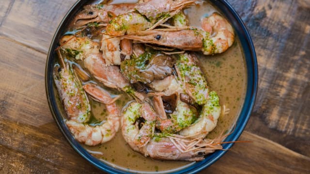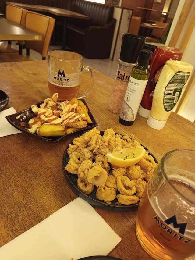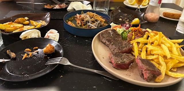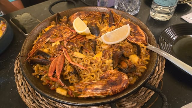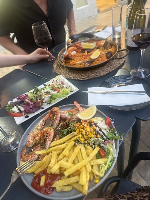 8/10The food was generally good and fresh, we ordered paella which also contained a piece of crab which was nice and also had plenty of seafood. Salads were fresh too, however, we ordered grilled shrimps and those were not devained and contained a lot of dirt aka the difestion system and it tasted gritty and muddy. The stuff said it was from the grill - which is simply not true - I am not sure if they didn’t know or lied, most likely the latter. They brought some additional ones but it was not much different. The tables were sticky and dirty, the staff cleaned it a bit after we asked them. Also, they didn’t bring extra plates for the shells and enough napkins.
